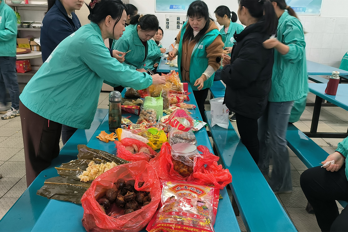In the cafeteria, colleagues brought out their hometown's special snacks: sesame cakes, mung bean cakes, spicy pickled ginger, crispy pastries, candied winter melon, Nansheng sesame dates, pickled konjac... While savoring the delicacies from all over the country, everyone also opened up, sharing the local customs and cultures of their hometowns and the ingenious craftsmanship behind the delicious foods.